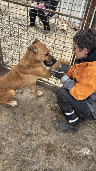 Sie hat sich super über unseren Besuch in ihrem Kennel gefreut. Sie begrüßte uns überschwänglich und genoss unsere Streicheleinheiten in vollen Zügen. Auch unsere Leckerchen fand sie einfach nur super. Sie liebt den Kontakt zu uns Menschen und schaute recht traurig, als wir den Kennel wieder verlassen mussten.
