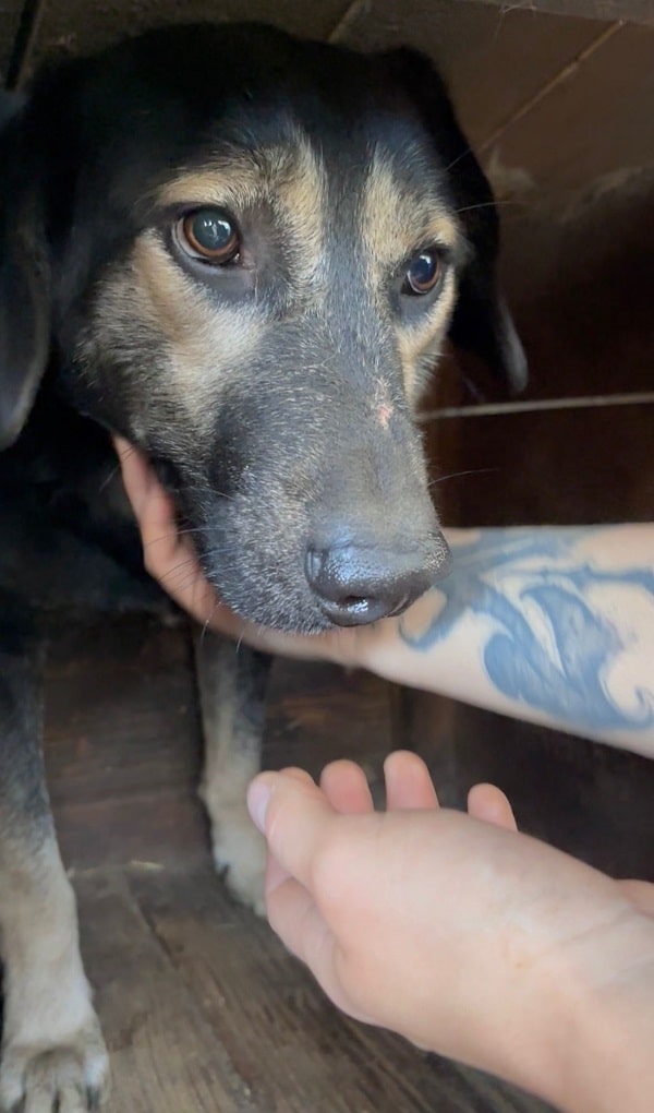 Unser süßer BENNE mit den ausdrucksstarken Augen hofft nun seit mehr als 2,5 Jahren vergeblich im Shelter auf sein Glück. Auch bei diesem Besuch freute er sich riesig und wuselte sofort mit den anderen Hunden um uns herum. Er kam immer wieder bist zur Hand und war ganz aufgeregt über die seltene Abwechslung. In seiner sicheren Hütte konnten wir BENNE schließlich behutsam streicheln und er schien es gar nicht schlecht zu finden.