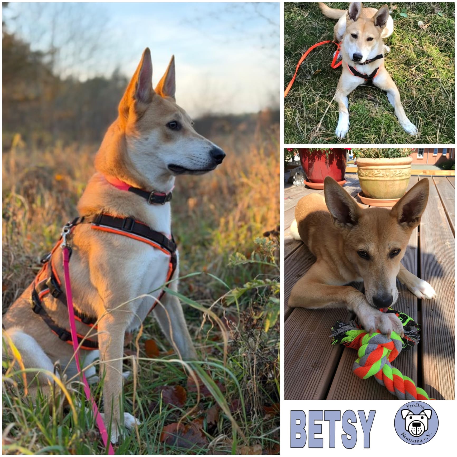 Wenn Betsy Vertrauen gefasst hat, ist sie ganz zuckersüß mit „ihrer“ Person. Sie benötigt ganz klare Führung, Grenzen und Regeln, um sich sicher zu fühlen. Dann ist sie kooperativ und hat Spaß etwas zusammen zu machen (z.B. Futterbeutel suchen und apportieren) Leinenführigkeit muss noch weiter geübt werden. Bei Unsicherheit setzt sie gerne 42 Argumente (Zähne) ein um alles auf Abstand zu halten. Für Betsy wäre ein ländliches Zuhause schön mit wenig Außenreizen schön, nicht zu Kindern, Katzen oder anderen Hunden (diese findet sie überflüssig). Jagdtrieb ist definitiv vorhanden, bisher gut aber zu händeln. Sie kennt es, einen Maulkorb zu tragen.