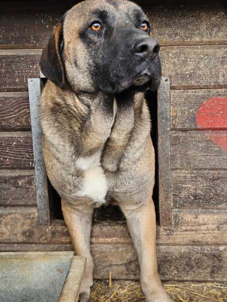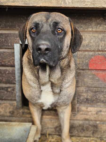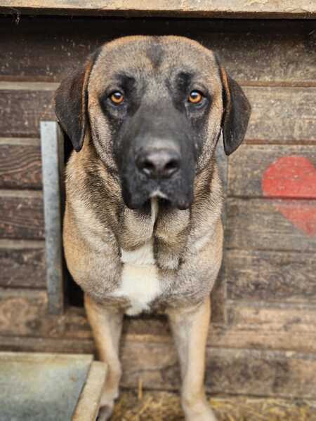 Bilbao ist von einem sanftem Gemüt. Er ist sich seines Erscheinungsbildes nicht bewusst. Ein wunderschöner Molosser in noch guter, händelbarer Größe. Er zeigte sich etwas schüchtern und ist auch gegenüber anderen Hunden eher devot als das er sich nach vorne drängelt. Ein richtig klasse Typ. Unsere Frolic liebte er sehr. Damit wird man sehr schnell sein Herz erobern können.