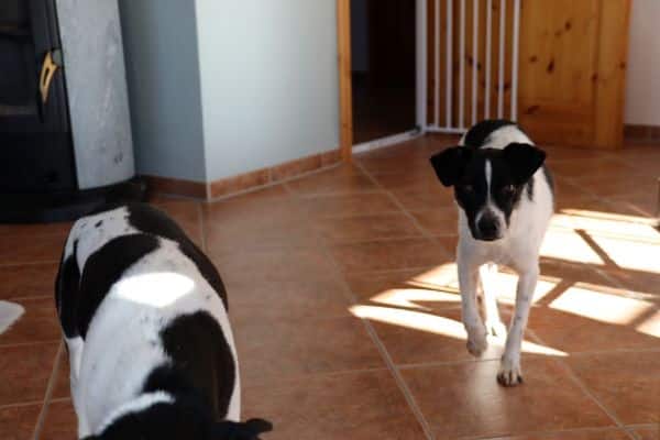Bino verhält sich bei Familienangehörigen oder fremden Besuch sehr mustergültig. Er steht abwartend und freundlich mit der Rute wedelnd im Flur und wartet darauf gestreichelt zu werden. Er bellt nicht und springt auch nicht unseren Besuch an, um die volle Aufmerksamkeit zu erlangen. Wenn ihr bereits einen souveränen Hund besitzt, wäre das für Bino ein großer Gewinn, da er sich an einem sicheren Hundepartner orientieren kann und dadurch zusätzlich Stabilität bekommt.