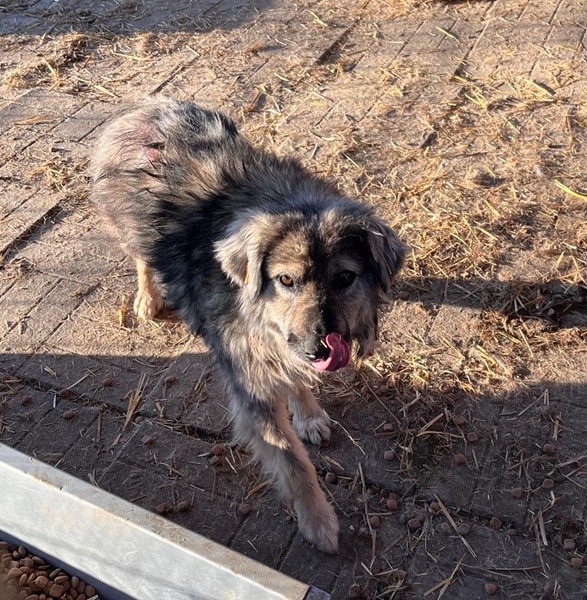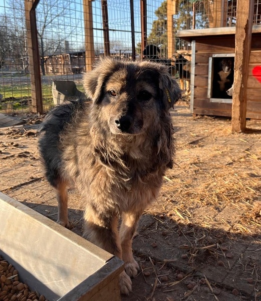 Ende August 2023 saß BLAIR nach der ersten Impfung im VetKennel. Dieser Hund ist nun ausreisebereit und sicherlich in einem Außenkennel untergebracht. Dort kann jeder Tag der letzte sein. So gefährlich für Hunde, bei denen sich die Zwingergemeinschaft erst noch bilden muss. Im VetKennel war es eng und wir kamen nicht ausreichend heran, um unter dem Fell das Geschlecht zu prüfen. Neugierig war BLAIR und würde auch sicher schnell zugänglicher werden. BLAIR lag nur 1m von uns weg. Anfassen war jedoch noch zu viel und es wurde geschnappt. Sehr gute Hundeerfahrung sollte daher vorhanden sein. Verträglichkeit ist gegeben.