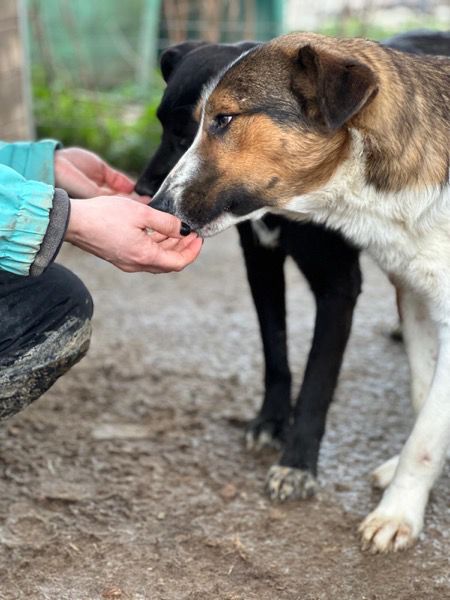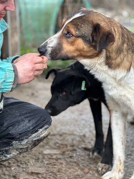 Bless ist ein neugieriger und offener Rüde. Er kommt zum Menschen und lässt sich zumindest bereits an der Schnauze vorsichtig berühren. Nach wenigen Tagen Training würde man Bless sicherlich zutraulicher bekommen. In der Gruppe versteht er sich sehr gut. Beim letzten Update wurde eine Beinschonung notiert – diese konnten wir nicht mehr feststellen!