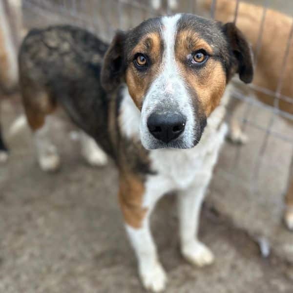 Der wunderhübsche BLESS mit den ausdrucksstarken Augen und der hübschen Fellzeichnung hofft seit Monaten im riesigen Shelter auf seine Chance. Er freute sich über unseren seltenen Besuch und wuselte neugierig zwischen den anderen Hunden um uns herum. Der direkte Kontakt mit uns ist für BLESS noch etwas neu, doch wir konnten ihn immer wieder kurz und behutsam streicheln. Sobald zu viel unserer Aufmerksamkeit auf ihm lag, wich er lieber aus.