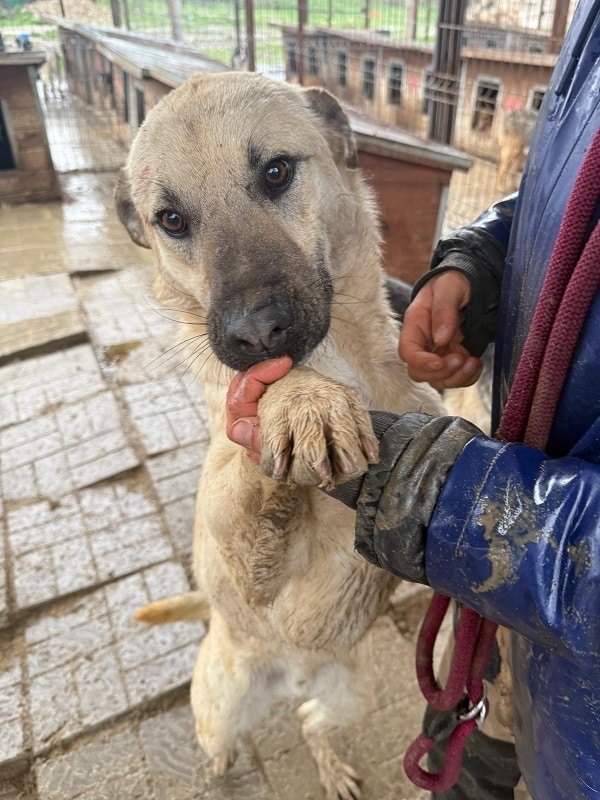 BOGI zeigte sich verschmust und wollte unbedingt unsere Aufmerksamkeit und, so schien es uns, auch die der anderen Hunde. Er sitzt mit ausschließlich erwachsenen, teilweise schwierigen Hunden zusammen, die keine guten Vorbilder für ihn sind. Er versucht, sich dort zu behaupten, und verhält sich den anderen Hunden gegenüber teilweise ebenfalls sehr unangemessen aufdringlich und übergriffig, was extrem gefährlich ist. Während wir in seinem Kennel waren, wurde er mehrmals von Hunden gemaßregelt. Dabei wurde er mal angemessen gemaßregelt und mal völlig überzogen angegriffen. Ihm fehlt einfach völlig die Anleitung und er weiß nicht, wie er sich verhalten soll.