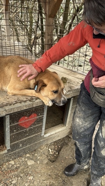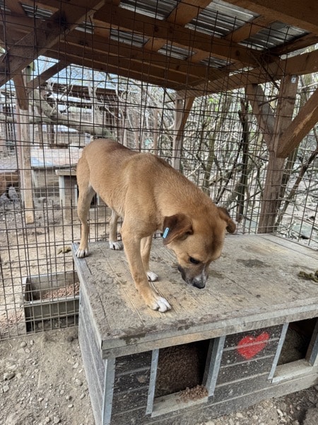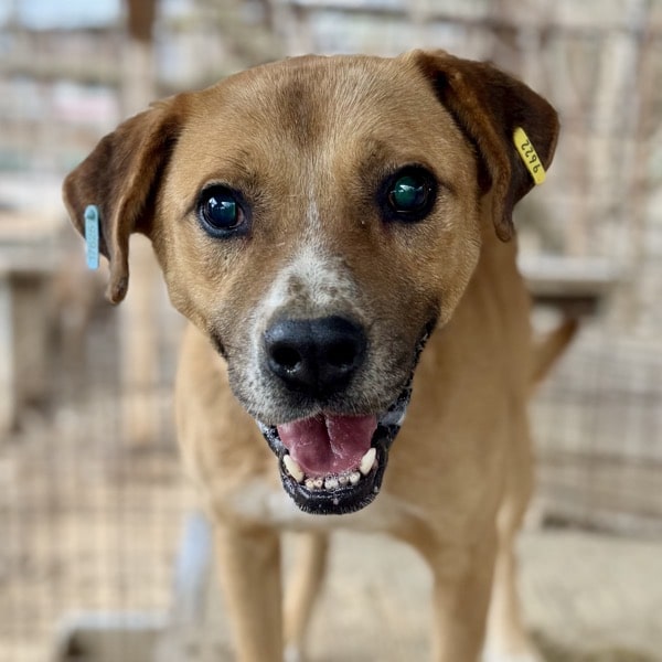 Der zauberhafte BRUNETTI erwartete uns bereits freudestrahlend bevor wir seinen Zwinger betraten. Wir merkten schnell, dass BRUNETTI blind sein muss – er folgte unserer Hand bei mehreren Tests nicht und blinzelte nicht bei raschen Handbewegungen. Es schien oft so, als würde er raten, wohin er sich für Leckerlie und Streicheleinheiten bewegen muss. Vielleicht sitzt er auch deshalb mittlerweile in einem Einzelkennel, weil andere Hunde Probleme mit seiner Einschränkung haben. Dass BRUNETTI uns nicht sehen kann, hinderte ihn jedoch nicht daran, dass er unsere Nähe in vollen Zügen genießt. Mit seiner zutiefst verschmusten Art drückte er seine Dankbarkeit aus und sog jede Streicheleinheit förmlich auf. BRUNETTI ist ein ganz besonderer Rüde, der trotz seiner Einschränkung mit so viel Herzenswärme und Lebensfreude beeindruckt. Er sehnt sich so sehr nach einem sicheren, liebevollen Zuhause, in dem er endlich ankommen darf – und gesehen wird, wie er ist: ein herzensguter Hundejunge mit ganz viel Liebe im Gepäck.