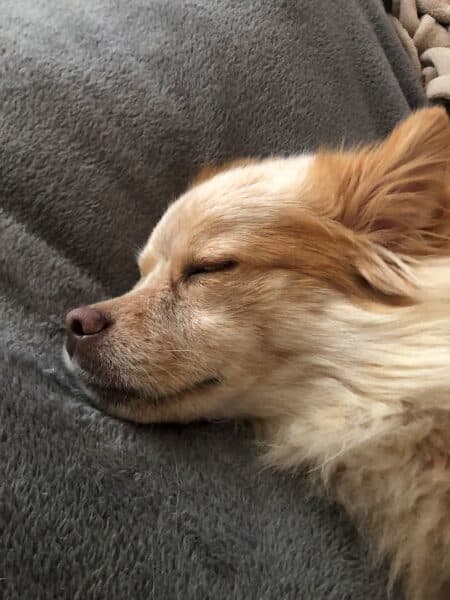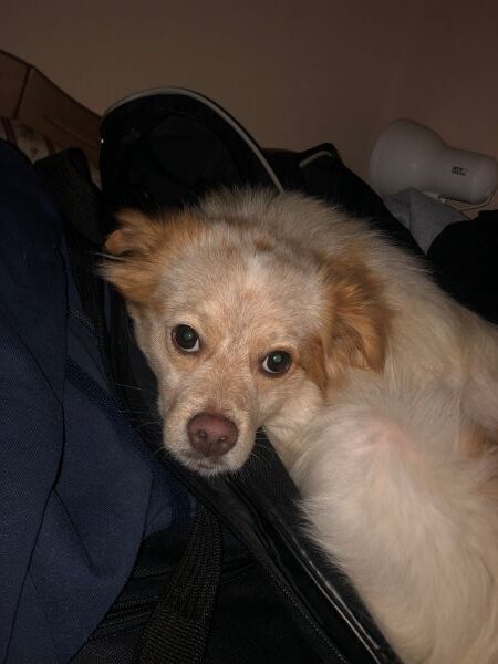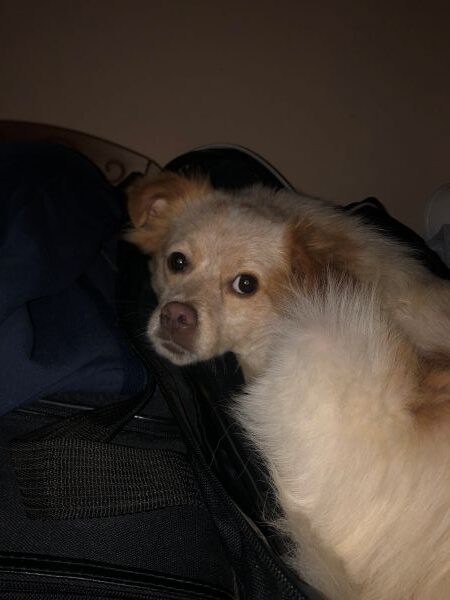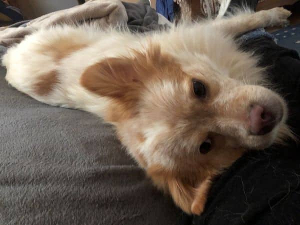 Den Futterbeutel zu apportieren findet er klasse. Am schönsten ist es für ihn, mit seinem Menschen zu kuscheln. Nachts hat er sich – still und heimlich – in Pflegefrauchens Bett geschlichen. Dort schläft er die Nacht auch durch.