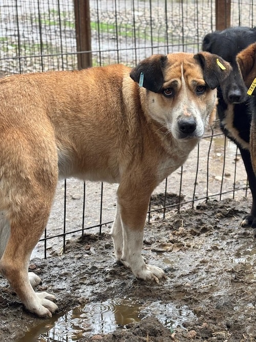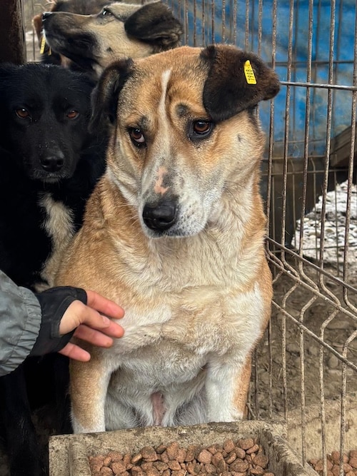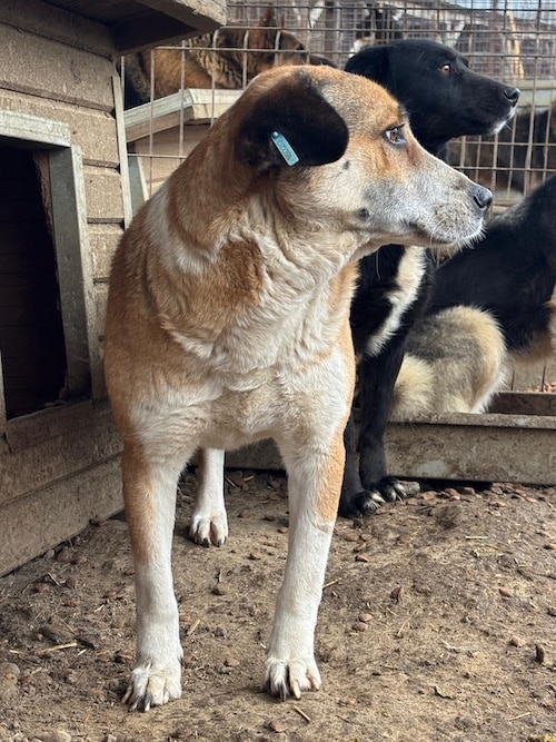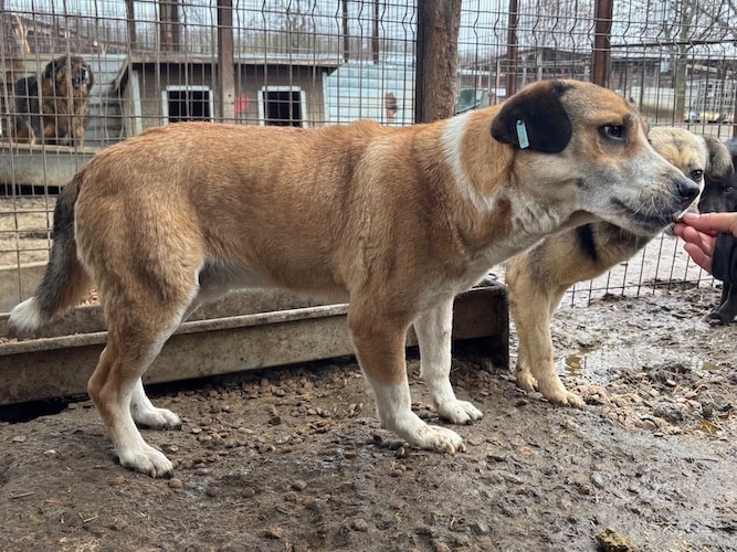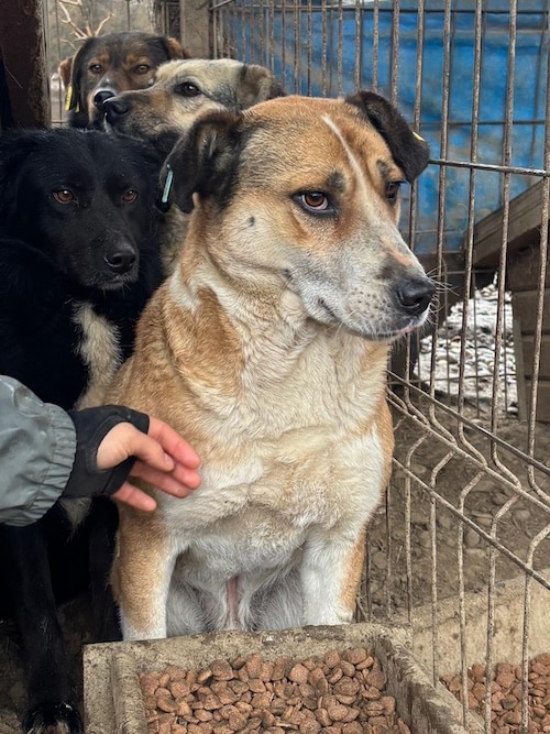 Dieser Rüde ist bereits seit 2022 im Shelter, wurde aber erst jetzt erfasst. Er war neugierig in unserer Nähe und nahm gerne unsere Leckerchen, wenn wir sie ihm hinwarfen. Dabei kam er auch auf ca. 1m an uns ran. Für mehr Nähe fehlte ihm leider der Mut. Mit den anderen Hunden war er sehr verträglich. Ein netter Ersthund, an dem er sich orientieren kann, würde ihm die Eingewöhnungszeit sicher erleichtern.