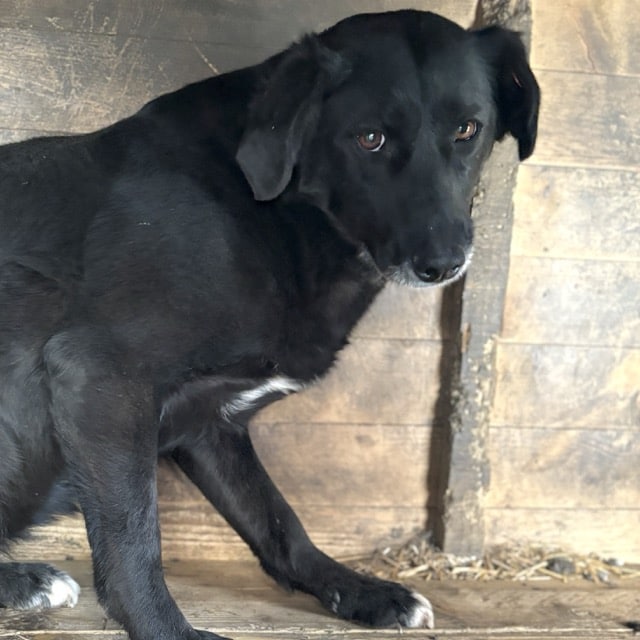 Sie lebt mit zwei großen Rüden in einem Kennel und ist mit ihnen verträglich.