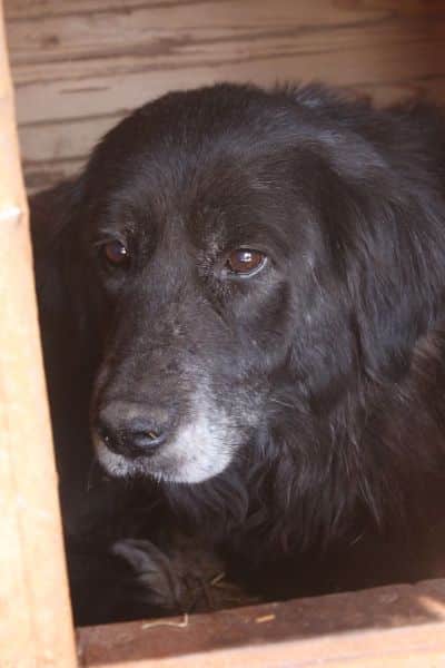 Calimera kam zunächst nicht aus der Hütte, zeigte so gar keine Reaktion. Durch das Umherlaufen der Kennelkumpeline ließ sie sich dann doch zum Herauskommen überreden. Eine gemächliche alte Dame, die sicherlich auch lieber woanders ihren Lebensabend verbringen würde. Kontakt zu uns wollte sie nicht.