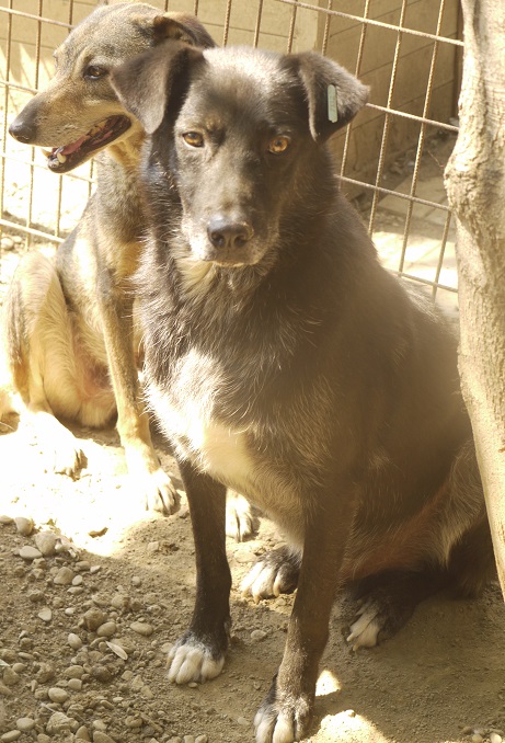 CALMA ist weiterhin in ihrem kleinen Kennel die Chefin. Sie war sehr uns interessiert und nahm Leckerlie aus der Hand. Zu mehr fehlte ihr der Mut. Als Einzelhund wäre sie wahrscheinlich sehr glücklich.