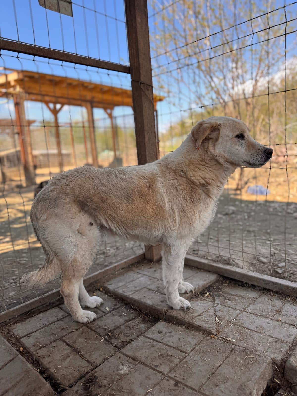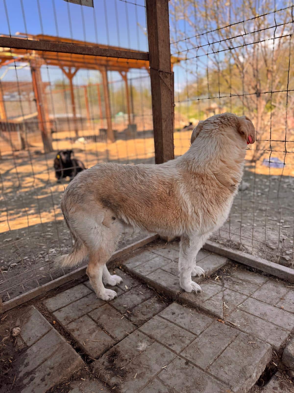CAMELLO beobachtet edas Geschehen von seinem Kenneldach aus. Unseren Besuch konnte er nicht annehmen, sobald wir uns ihm näherten, wendete er seinen Blick ab, um einem Konflikt aus dem Weg zu gehen. Wurde es ihm zu viel, stand er auf und suchte sich einen neuen Platz, dabei reagierte er aber nicht panisch.