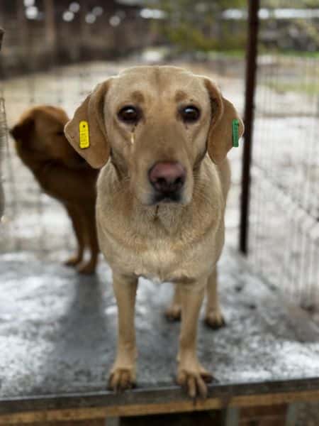 Bei näherem Inspizieren des Kennels fanden wir diese rehbraune Hündin hinter einem Bretterverschlag. Beim Rauslaufen schien sie uns nicht panisch, jedoch wollte sie keinen direkten Menschenkontakt. Als sie dann in der Hütte saß, konnten wir sie sogar streicheln, Leckerchen wollte sie keine annehmen. Die Streicheleinheiten konnte sie noch nicht genießen, blieb dabei jedoch defensiv und zeigte keinerlei Abwehrverhalten.