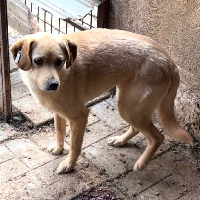 Der niedliche CAN hielt sich bei unserem Besuch fast ausschließlich in der Hütte auf und beobachtete von dort aus unser Tun und das Gewusel der anderen Hunde im Kennel. Von selbst suchte er nicht unsere Nähe und freiwillig wollte er sein Versteck auch nicht verlassen. Unsicher schaute er sich um, als er dann doch mitten im Kennel stand und man sah ihm deutlich an, dass er uns nicht recht einschätzen kann und deshalb lieber seinen Sicherheitsabstand einhält. Wir bedrängten ihn deshalb auch nicht. Für CAN suchen wir einen erfahrenen Platz bei lieben Menschen, die ihm die nötige Zeit und den Raum geben, um in seinem Tempo anzukommen und Vertrauen zu lernen. Ein aufgeschlossener und netter Ersthund wäre ihm dabei sicher eine große Stütze.