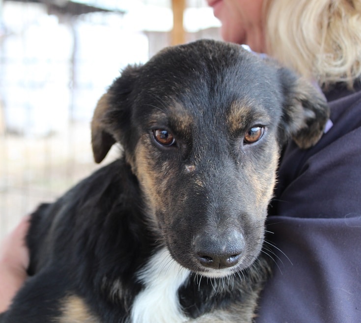 Als wir den Kennel betraten, war CAROL erstmal recht zurückhaltend. Sie scheint den positiven Kontakt zum Menschen einfach nicht zu kennen und sucht deshalb mehrfach Schutz in der Hütte um in Sicherheit beobachten zu können. Sie nahm mutig Leckerchen aus der Hand und war dabei an der Schnauze anfassbar. Unter Bedrängung in der Hütte konnten wir sie richtig kraulen und ihr zeigen, dass Streicheln nicht schlimm ist. Sie konnte es zwar noch nicht voll genießen, hat es aber ohne übermäßig angespannt zu sein mit sich machen lassen. CAROL sollte schnell Anschluss an den Menschen bekommen und wird dann sicher auch ganz auftauen können. In ihrem Kennel zeigte sie sich sehr verträglich mit Rüden und Hündinnen, sie beobachtete uns auch sehr interessiert, während wir uns mit den anderen Hunden beschäftigten. Ein souveräner Ersthund würde ihr das Ankommen und Einleben im neuen Zuhause sicher erleichtern.