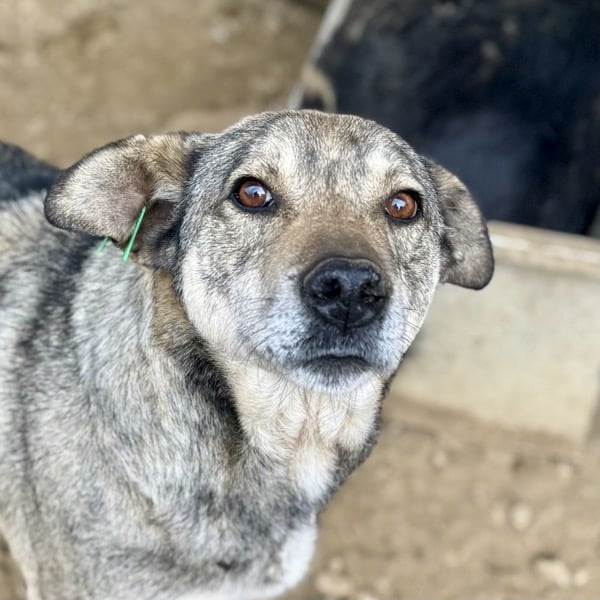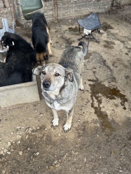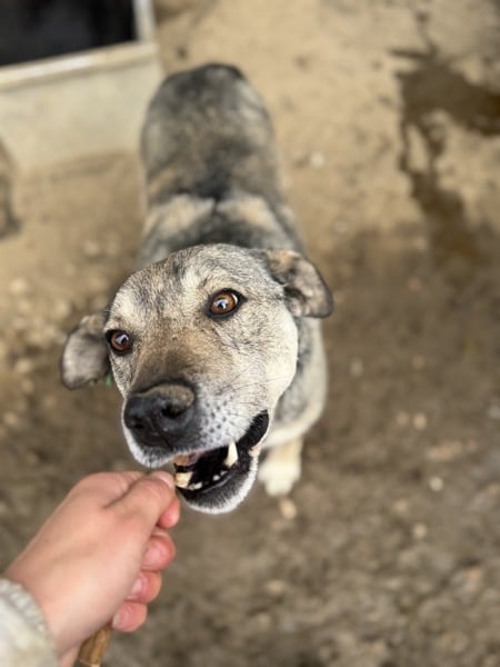 Dieser dünne, zurückhaltende Rüde ist noch etwas vorsichtig im Umgang mit uns Menschen. Er ließ sich zwar anfassen, doch man merkte, dass er sich dabei nicht besonders wohl fühlte. Er zeigte großes Interesse an den von uns mitgebrachten Leckerlies. Wir denken, dass er in einer stressfreien Umgebung sicherlich Fortschritte machen und weiter Vertrauen fassen würde.