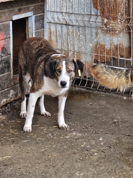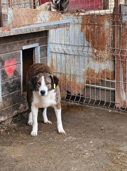 Catifea ist hielt sich während unseres Besuches hauptsächlich in der Hütte auf. Doch manchmal warf sie uns aus der Hütte einen zarten Blick zu. Sie ist von Junghund an ohne wirklichen Menschenkontakt aufgewachsen. Wer mag ihr die Unsicherheit verübeln. Im Shelter ist ihre Chance auf Entwicklung eher gering, denn sie braucht regelmäßigen Kontakt. Sie wünscht sich Menschen, die ihr Zeit geben in ihrem Tempo anzukommen. Ein weiterer Hund im Haus wird ihr helfen sich einzuleben. Wir geben die Hoffnung für sie nicht auf.