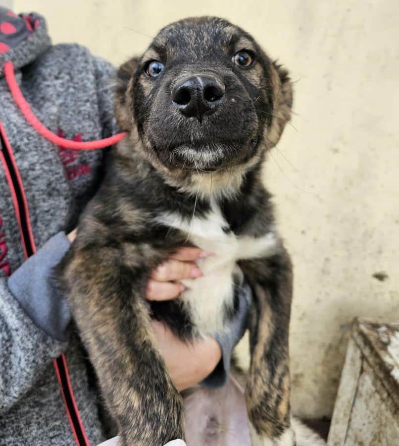 | Wesen & Zutraulichkeit (Character & Trustworthiness) | welpentypisch (typical for puppies), verspielt (playful), offen (open), freundlich (friendly), neugierig (curious), überall anfassbar (touchable everywhere) |