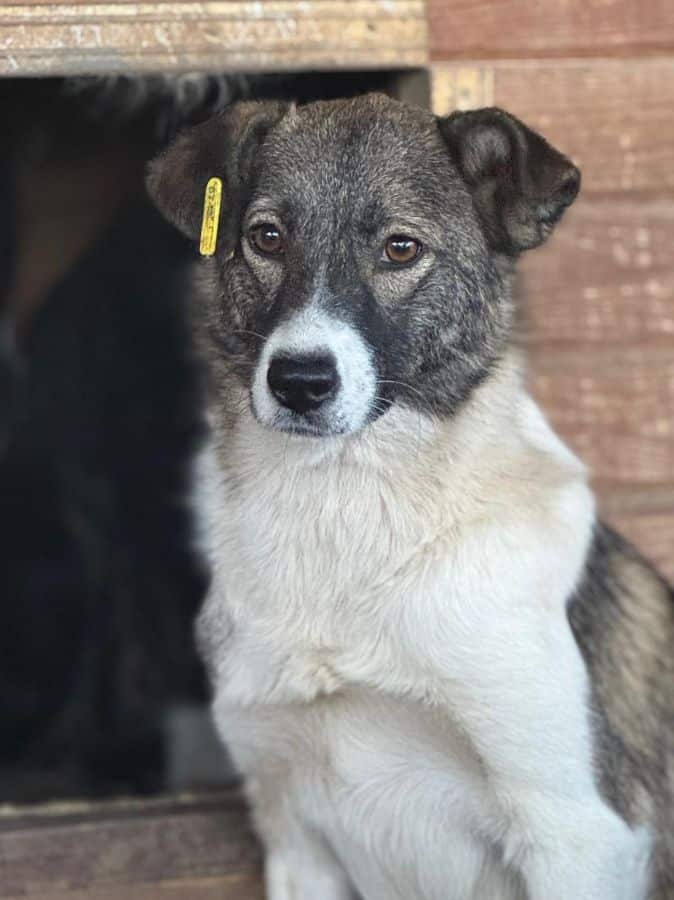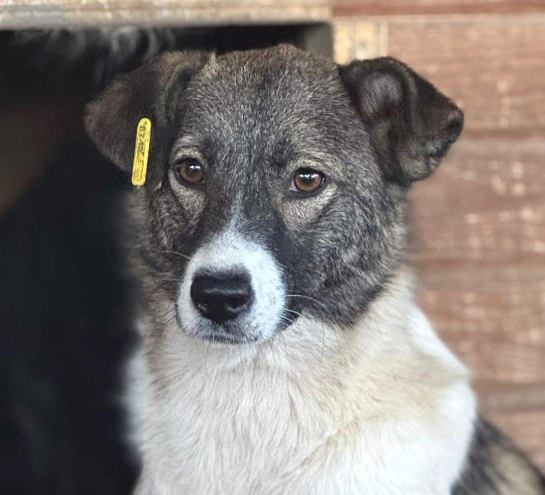 Die hübsche CELESTE wusste mit uns nicht so richtig was anzufangen, als wir den Kennel betraten. Uns gegenüber zeigte sie sich zurückhaltend und suchte immer wieder Schutz in der Hütte, wobei sie zu keiner Zeit panisch war. Sie nahm unsere Leckerchen vom Boden, anfassen konnten wir sie jedoch nicht. Dazu fehlte ihr einfach der Mut.