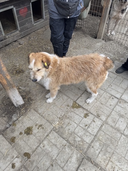 Dieser wunderschöne Rüde mit seinen ausdrucksstarken Augen ist neu in Bucov und vom Shelterleben sichtlich beeindruckt. Dennoch war er neugierig und nahm vorsichtig Kontakt zu uns auf. Unsere mitgebrachten Leckerchen nahm er aus der Hand und ließ sich dabei vorsichtig anfassen. Zu mehr fehlte ihm der Mut. Wir sind sicher, dass er in einer ruhigen und verständnisvollen Umgebung sehr schnell auftauen wird. Er lebt in einem gemischten Rudel und scheint dort verträglich zu sein.