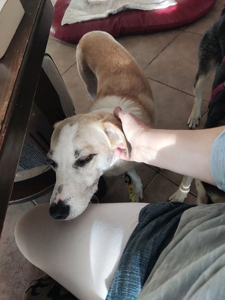 Hier bei uns freut er sich über die gewonnene Freiheit, den Garten, das Gras, die Sonne, die Stille, die Sauberkeit, die Streicheleinheiten. Er mag bei einem sein, bittet um Aufmerksamkeit, ohne dabei aufdringlich zu sein. Hektische Bewegungen oder laute Geräusche sind ihm teilweise noch unangenehm und lassen ihn dann einen seiner sicheren Orte aufsuchen; seinen Lieblingsplatz neben dem Bett oder auch die Couchecke. Doch immer öfter hält er es auch aus und schaut neugierig nach der Ursache.