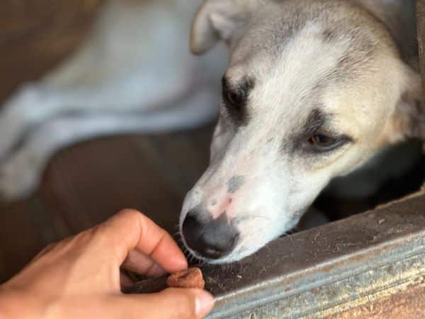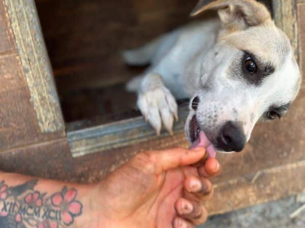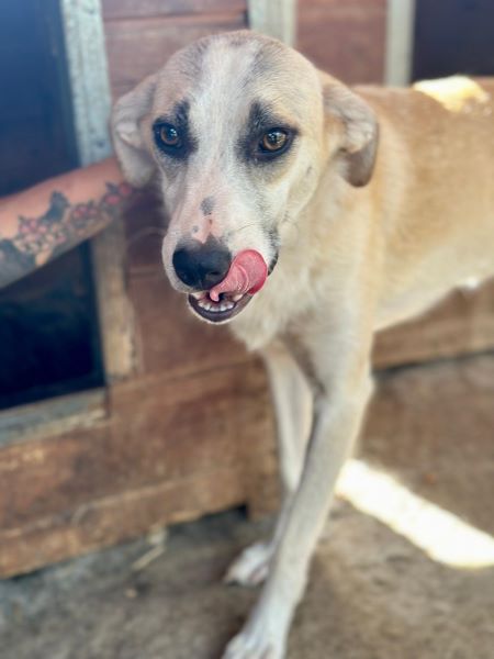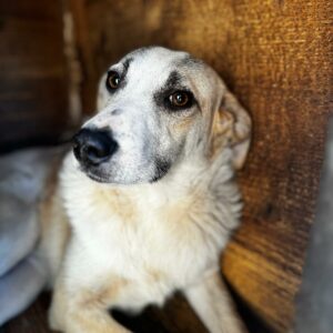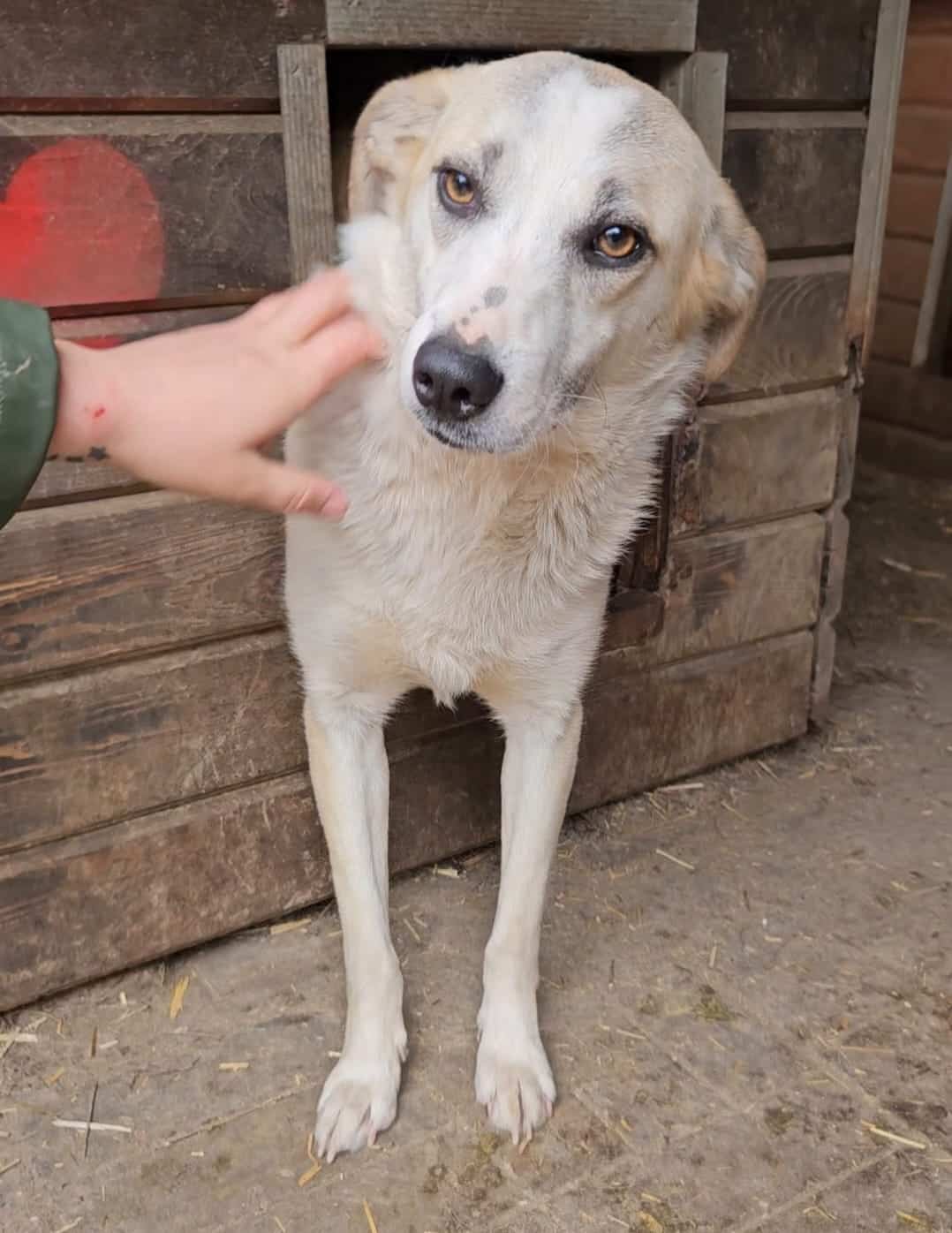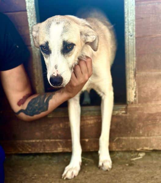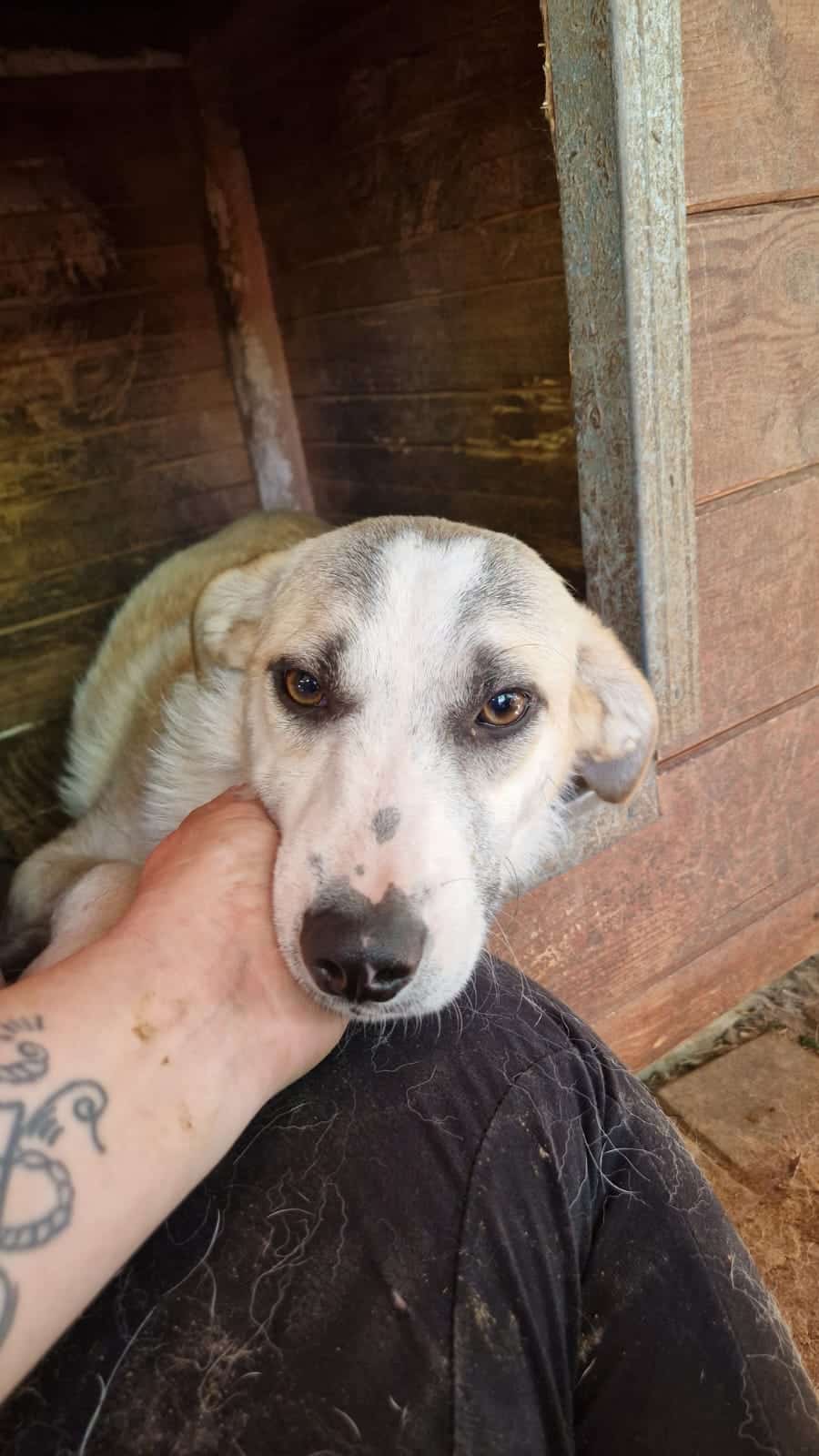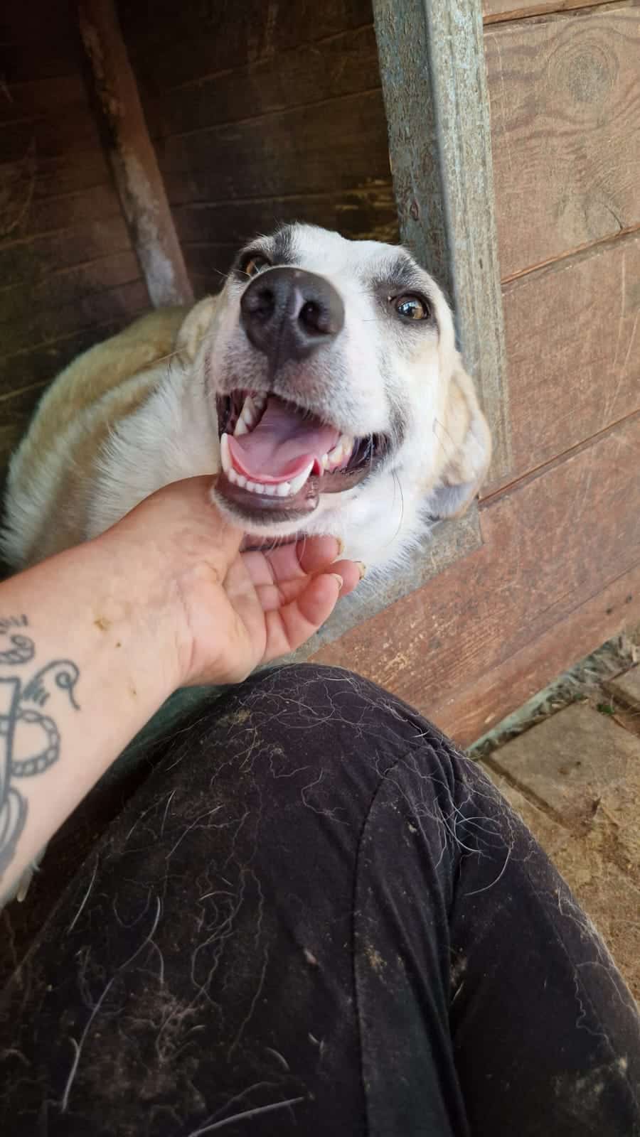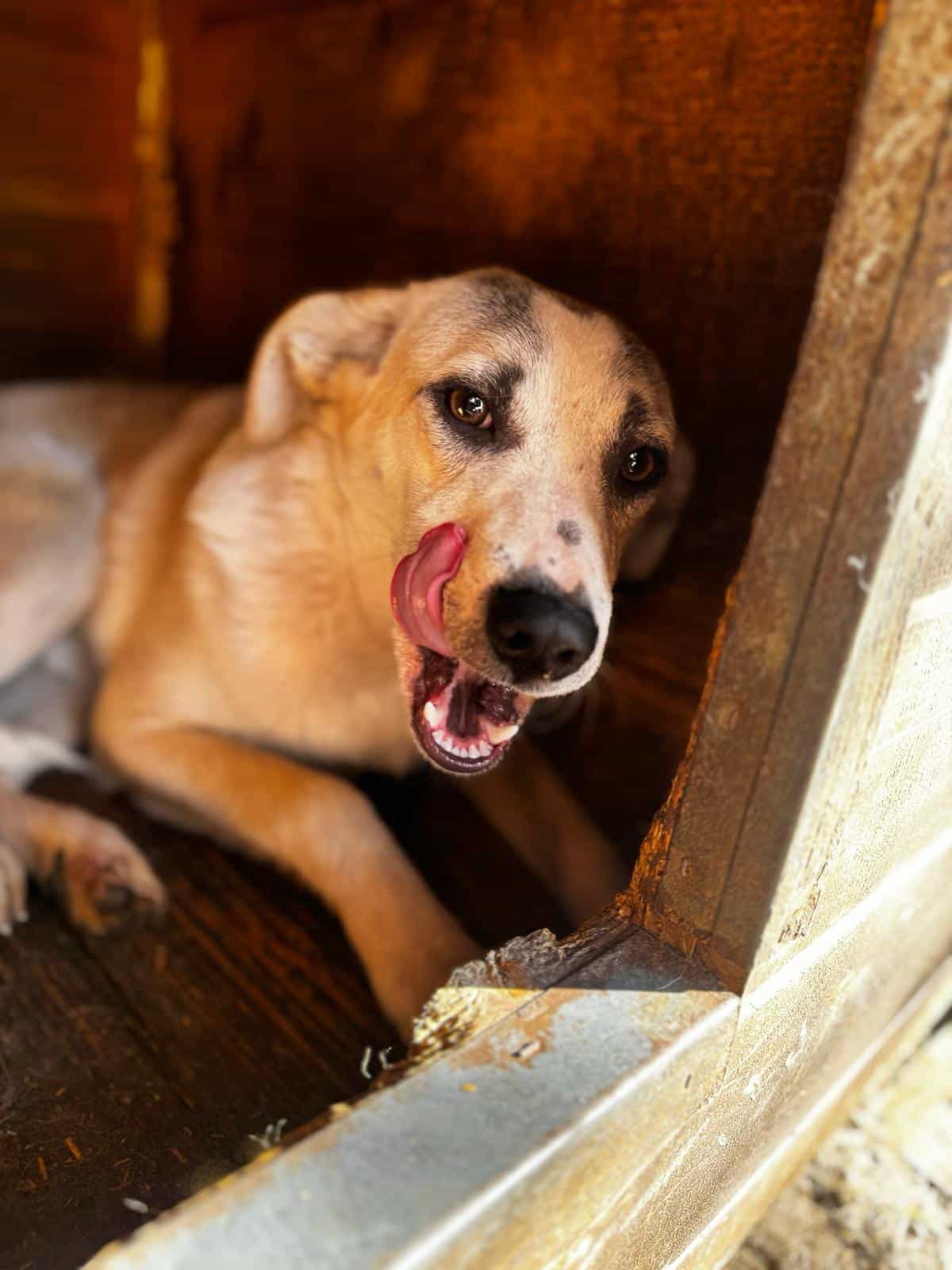 CHUSU rührte uns sehr bei unserem Besuch in seinem Kennel. Anders als die anderen Junghunde kam er nicht aufgeregt zu uns, sondern lag traurig in der Hütte. Er ließ sich da problemlos streicheln. Vom Wesen ist er viel ruhiger als seine Kennelkollegen, die Streicheleinheiten in der Hütte genoss er dafür richtig. Er kam später auch noch einmal raus und suchte auf seine Art Kontakt zu uns. Ein rührender, eher ruhiger Junghund, dem die Kindheit im Shelter geraubt wurde, der trotzdem durchweg nett zu Menschen ist und für den wir uns einfach wünschen, dass er seine Menschen noch findet.
