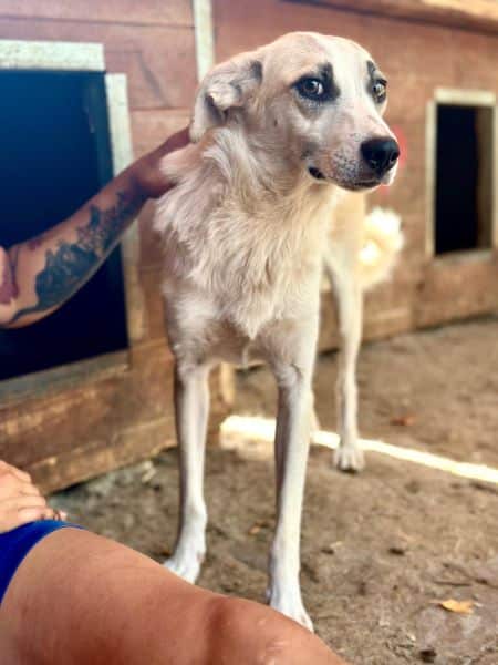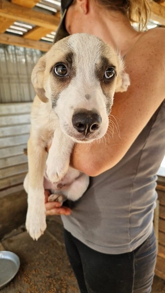 Der tolle CHUSU sitzt immer noch mit seinen Geschwistern und Mama LANI in einem Kennel. Er ist leider etwas schüchtern geworden, aber auch stets freundlich, neugierig und interessiert. CHUSU nahm gern Leckerlies aus der Hand und ließ sich streicheln. Das Streicheln ist für ihn jedoch völlig ungewohnt, weshalb er das auch nicht genießen konnte. Wir schätzen, dass er in einer ruhigen Umgebung, mit Geduld schnell auftauen würde und ein toller Begleiter wäre.