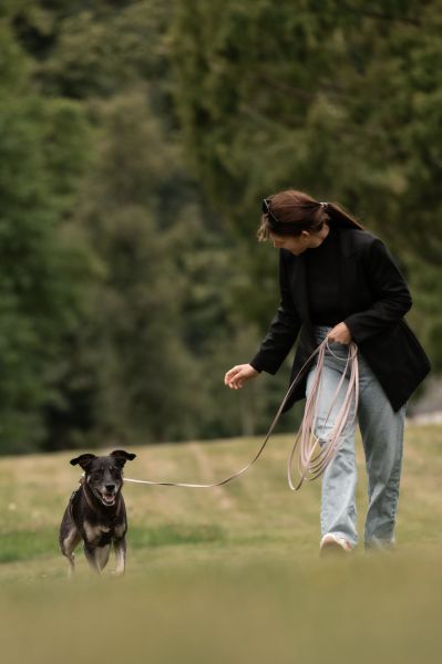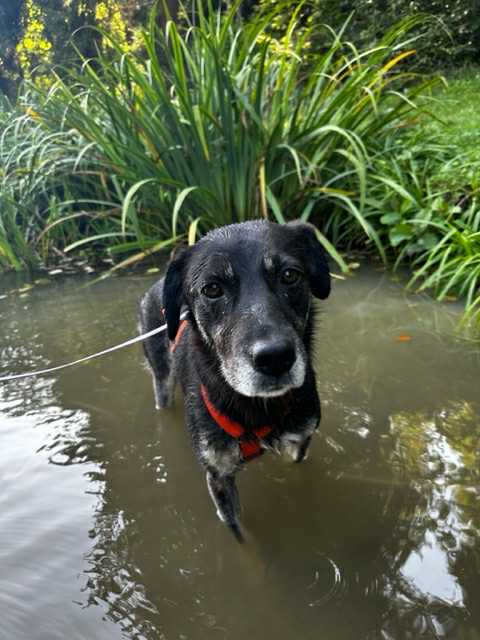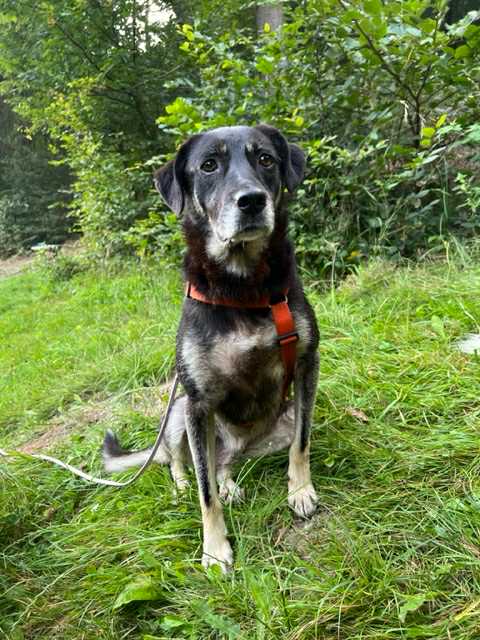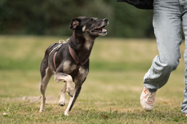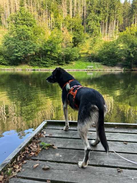 Chutchi war anfangs ziemlich eingeschüchtert von ihrem neuen Leben. Kein Wunder, sie saß seit Welpe an in einem rumänischen Tierheim und hat nie etwas kennenlernen dürfen. Dies legt sie aber Tag für Tag mehr ab. Trotzdem gibt es nach wie vor Situationen, in denen sie unsicher reagiert. Hier orientiert sie sich an ihrer Bezugsperson, die ihr Sicherheit geben sollte.