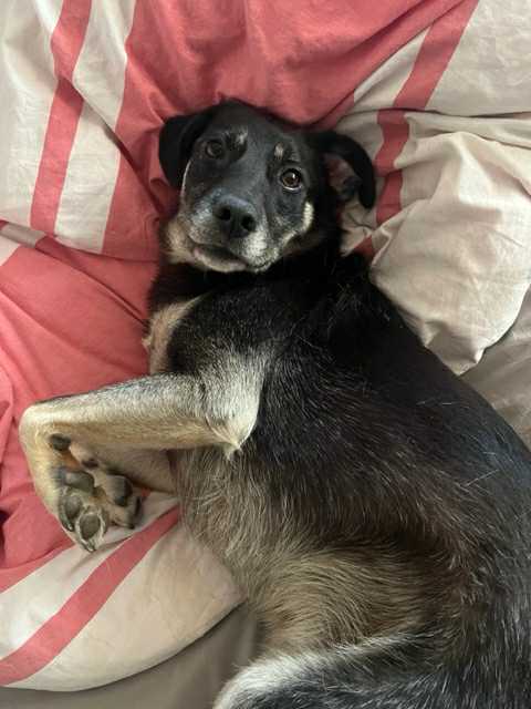 Die hübsche Chutchi ist eine ganz liebe, sanfte Hündin. Sie ist seit Ende Juli 2025 auf Pflegestelle in Deutschland. Hier macht sie Tag für Tag große Fortschritte.