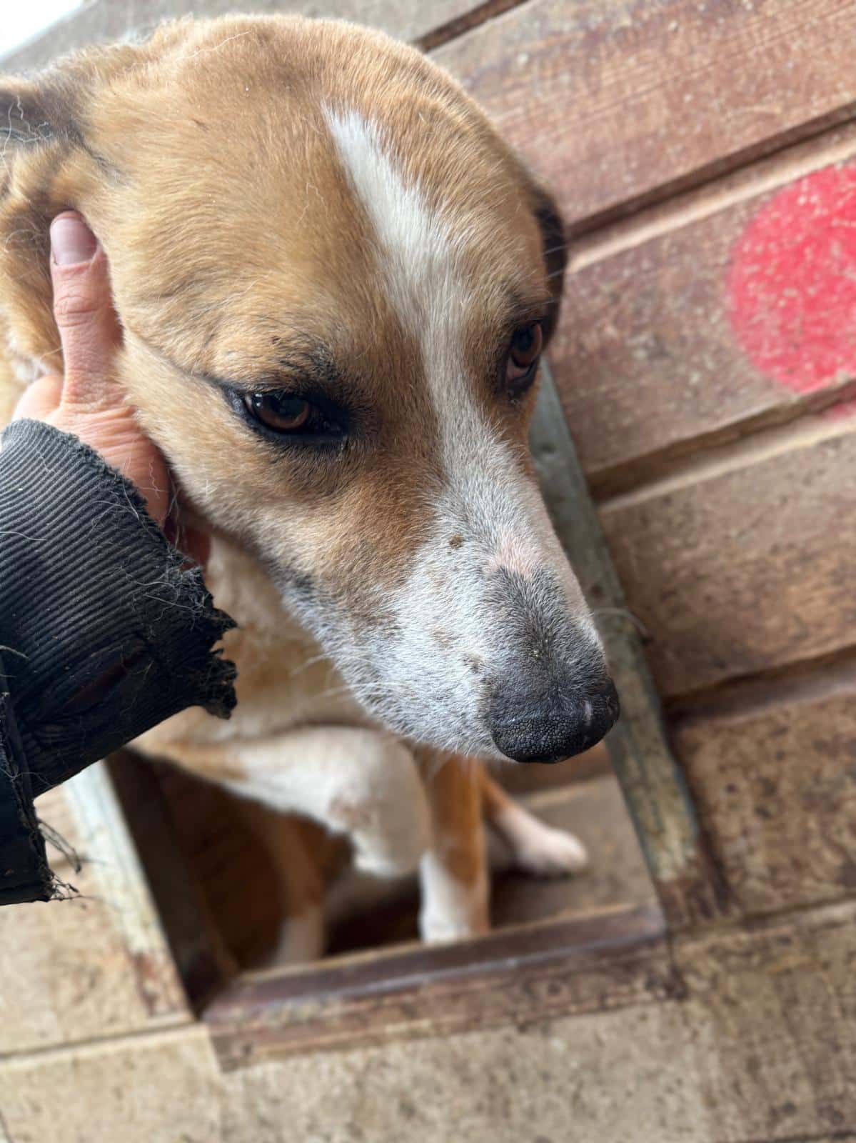 Ein weiteres Jahr ist vergangen und drei ganze Jahre muss Ciamo jetzt schon im Shelter durchhalten. Er ist weiterhin unsicher, aber in der Hütte konnten wir ihn gut anfassen und streicheln und er zeigte dabei keinerlei Abwehrverhalten. Leider ist Ciamo aktuell zu dick.