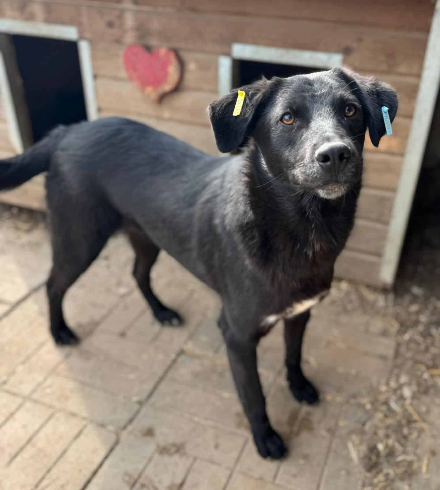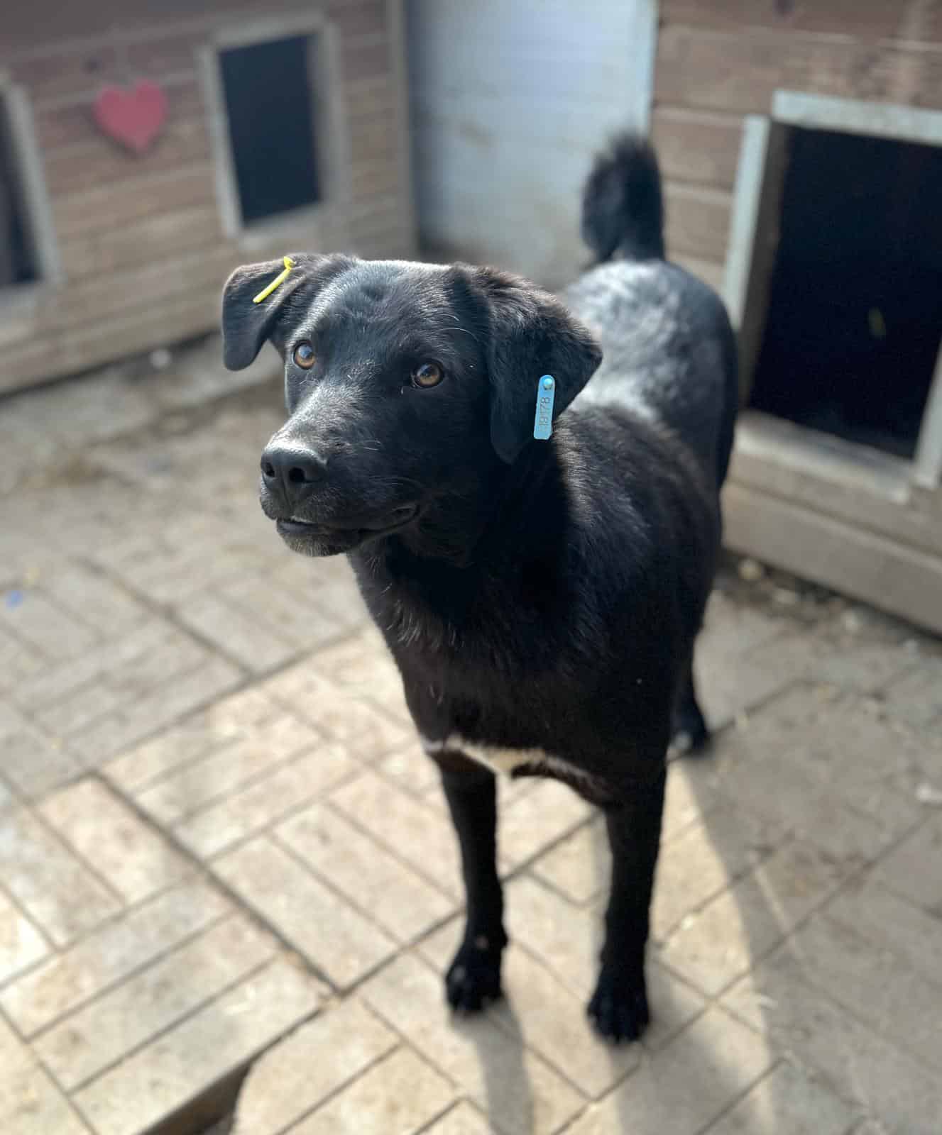 Der süße COLAN ist ein neugieriger, aber noch zurückhaltender Rüde. Er nahm Leckerlies aus der Hand und wir konnten ihn dabei auch schon vorsichtig an der Schnauze berühren, für mehr fehlte ihm in der trubeligen Situation in seinem kennel noch der Mut. Er lebt in einem sehr stressigen Kennel und durch die anderen Hunde war zwischendurch kein Rankommen an ihn.