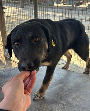 Für Conga ist ein weiteres Jahr im Shelter vergangen, aber zum Glück hat sie sich ihre offene Art bewahrt und war ständig in unserer Nähe. Sie zeigte Interesse an uns und unseren Leckerlies, die sie gerne aus der Hand nahm. Dabei konnten wir sie leicht an der Schnauze berühren, für mehr fehlt ihr leider noch der Mut. Aber es ist ein gutes Zeichen, auf dem man in einer ruhigeren Umgebung aufbauen kann. Wir hoffen sehr, dass Conga nun die Chance auf ein eigenes Zuhause bekommt und nicht noch länger im Shelter bleiben muss.