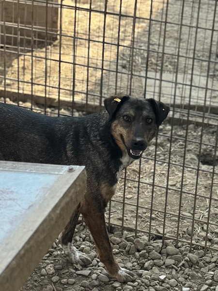 Diese hübsche Hündin mit der tollen Fellzeichnung und der niedlichen Ringelrute zeigte sich bei unserem Besuch sehr freundlich und interessiert. Gern kam CONTESSA immer wieder in unsere Nähe – hielt jedoch stets einen Sicherheitsabstand ein – und nahm die hingeworfenen Leckerlie dankbar an. Für mehr Kontakt fehlte ihr leider der Mut und so wich CONTESSA den Annäherungsversuchen unsererseits aus. Zuwendung wird ihr einfach fremd sein. Als es Zeit war für die allgemeine Mittagsruhe, legte sie sich entspannt in unserer Nähe auf ein Hüttendach und döste.