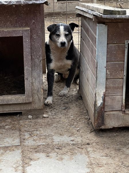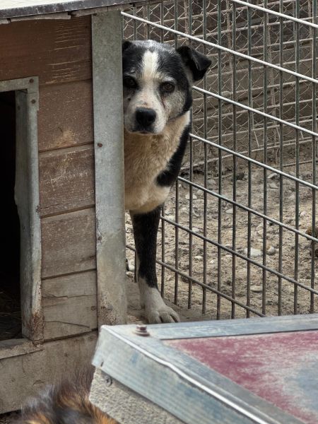 CORNEL flüchtet weiterhin vor uns. Er versucht sich Schutz hinter den Hütten zu suchen und zeigt kein Interesse an uns. In seinem Rudel lebt er mit Rüden, dort zeigt er sich grundsätzlich verträglich. Einen Tag vor unserem Besuch kam es zu einer Beißerei zwischen ihm und einem weiteren Hund, Hintergründe wissen wir nicht. Eine Aussage über die Verträglichkeit mit Hündinnen kann derzeit nicht getroffen werden.