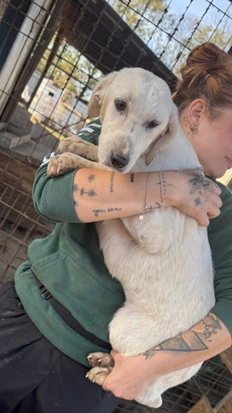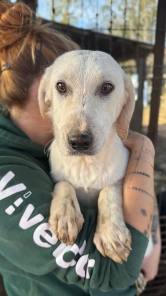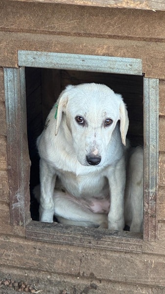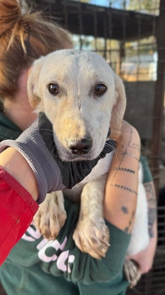 Die süße Cosy hat sich leider zu einer unsichereren Hündin entwickelt. Man merkt ihr an, dass sie keinen Menschenkontakt kennt. Wir konnten sie hochnehmen, dabei hat sie aber erst geschrien und dann sehr gezittert. Sie zeigt noch kein Abwehrverhalten, so dass wir sie hochnehmen und streicheln konnten, aber wenn sie nicht zeitnah einen Platz findet, dann wird sie womöglich noch unsicherer werden. Mit den anderen Hunden in ihrem Zwinger ist sie sehr verträglich und sollte daher nach Möglichkeit Zweithund werden.