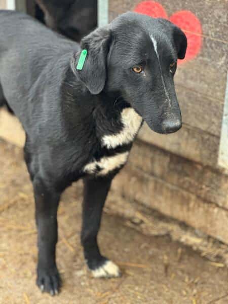 Diese Hündin sitzt frisch kastriert im Vetkennel. Nach einiger Zeit ließ sie sich mit der künstlichen Hand berühren, die sie zunächst mit den Zähnen abwehrte. Sie fand uns ziemlich gruselig und war sichtlich gestresst von unserer Anwesenheit, und dass sie im engen Vetkennel kaum ausweichen konnte. Im neuen Zuhause bräuchte sie definitiv Zeit zur Eingewöhnung. Auch würde DAISY sicherlich ein souveräner Ersthund helfen.
