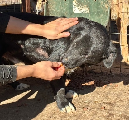 DASTY wurde im Bucov schwer gebissen und ist zu seiner eigenen Sicherheit nun im Sanctuary of Hope untergebracht. Die große Bisswunde an der Seite ist mittlerweile gut abgeheilt. DASTY ist neugierig und nahm selbständig Kontakt zu uns auf, auch wenn er dabei noch etwas unsicher ist. Leckerchen nahm er aus der Hand und wir konnten ihn gut anfassen. DASTY sollte zeitnah ausreisen dürfen.