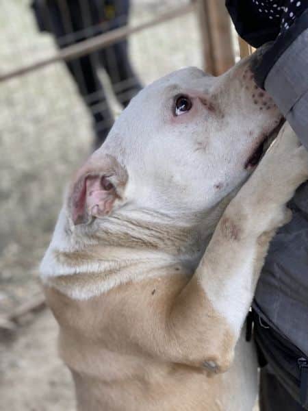 DAVY begrüßte uns bei unserem Besuch freundlich und überschwänglich und zeigte sich als sehr menschenbezogener, aktiver Rüde. Die Abwechslung im sonst so tristen Shelteralltag – insbesondere als Einzelsitzer – nahm er dankbar an. Er suchte aktiv unsere Nähe, sog die Aufmerksamkeit regelrecht auf, ließ sich gerne streicheln und wirkte dabei zeitweise so aufgedreht vor Freude, dass er sich kaum sortieren konnte. Trotz seiner Energie konnte er im Verlauf auch immer wieder zur Ruhe finden, was zeigt, dass er grundsätzlich ansprechbar ist. Seine Unruhe wirkt dabei weniger wie Stress, sondern vielmehr wie aufgestaute Energie durch fehlende Auslastung und soziale Interaktion.