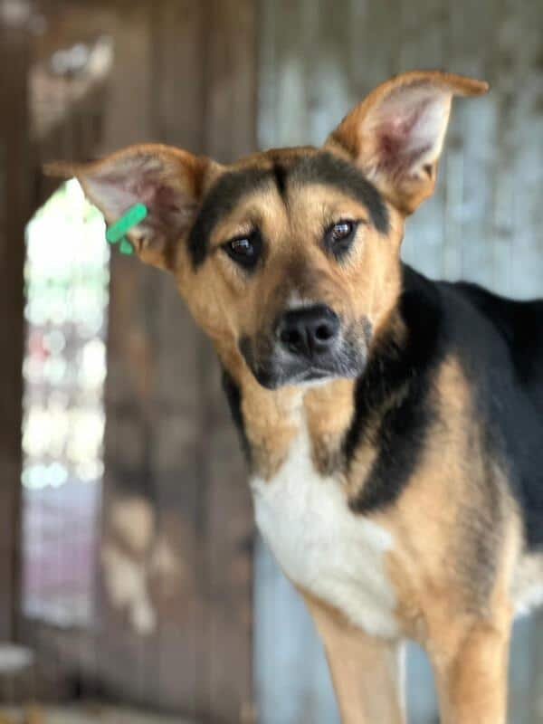 DAYO mit seinen riesigen, süßen Öhrchen wächst zu einem wunderschönen Junghund heran. Er begrüßte uns neugierig und war zusammen mit den anderen Hunden immer in unserer Nähe. Als wir uns ihm zuwandten, merkte man ihm an, dass er den Kontakt zum Menschen noch nicht kennt. Woher auch? DAYO ist seit Welpe an im Shelter. DAYO sollte schnell ausreisen, damit er positiven Kontakt zum Menschen kennenlernt. Ein netter Ersthund sollte vorhanden sein und wird ihm die Eingewöhnungszeit sicher erleichtern.