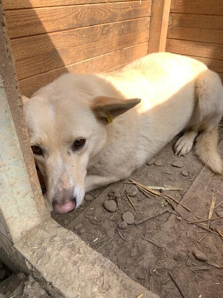 Die hübsche Dehli zeigte sich bei unserem Besuch glücklicherweise etwas zugänglicher als in den Jahren zuvor. Zunächst beobachtete sie uns aus ihrer Hütte heraus. In der Hütte konnten wir sie streicheln. Das ließ sie über sich ergehen, war nicht panisch, konnte es aber noch nicht genießen. In einer neuen Umgebung würde sie mit etwas Zeit zum Ankommen und Auftauen bestimmt aufblühen. Als sie merkte, dass wir ihr nichts böses wollten, hielt sie sich auch außerhalb der Hütte auf und beobachtete uns neugierig. Zu mehr fehlt ihr derzeit aus eigenem Antrieb noch der Mut. Mit ihren Kennelkollegen zeigte sie sich verträglich.