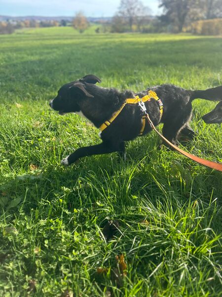 Im Haus zeigt er sich ruhig und ausgeglichen, draußen genießt er seine Spaziergänge und erkundet neugierig die Welt. Diddy ist verspielt und freut sich über gemeinsame Aktivitäten, sollte aber auf jeden Fall noch die Hundeschule besuchen, um das Hunde-ABC weiter zu festigen. Anfangs ist er etwas schüchtern, doch mit ein wenig Geduld taut er schnell auf und zeigt, wie verschmust und treu er ist. Mit anderen Hunden versteht er sich gut und könnte sich über einen netten Hundekumpel freuen – er kann aber auch problemlos Einzelprinz werden. Hühner, Schweine und Schafe kennt er bereits und verhält sich ihnen gegenüber ruhig und freundlich. Die Katzen im Haus ignoriert er. Stubenreinheit funktioniert größtenteils schon gut, das Alleinbleiben muss jedoch noch weiter geübt werden.