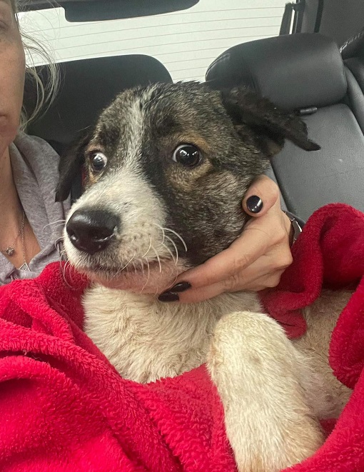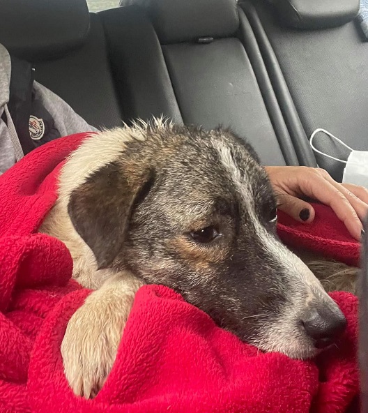 DJUNA wurde völlig durchnässt, vom Auto angefahren und mit dickem Abszess unter dem Maul auf der Strasse gefunden. Das Röntgen hat keine Verletzungen am Skelett ergeben, jedoch spielen die Muskeln nicht richtig mit. Wahrscheinlich leidet sie an einer Art Muskeldystrophie. Aktuell ist sie noch in Behandlung.