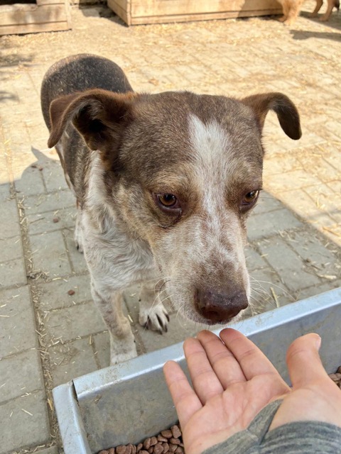 Der süße kleine DOBBIE hofft nun seit 2 Jahren vergeblich im riesigen Shelter auf sein Glück. Auch bei diesem Besuch zeigte er sich direkt sehr neugierig und war der Mutigste in seinem großen Kennel. Gern nahm DOBBIE die mitgebrachten Leckerlie aus der Hand und schnupperte interessiert an uns – für mehr Nähe fehlte ihmjedoch der Mut und einfach der regelmäßige Umgang. Wir sind uns sicher, dass DOBBIE in einer stressfreien Umgebung bei verständigen Menschen rasch Fortschritte machen und auftauen wird. Ein netter Ersthund würde ihm die Eingewöhnung sicher zusätzlich erleichtern. Wir wünschen dem verträglichen kleinen Hundemann diese Chance sehr.