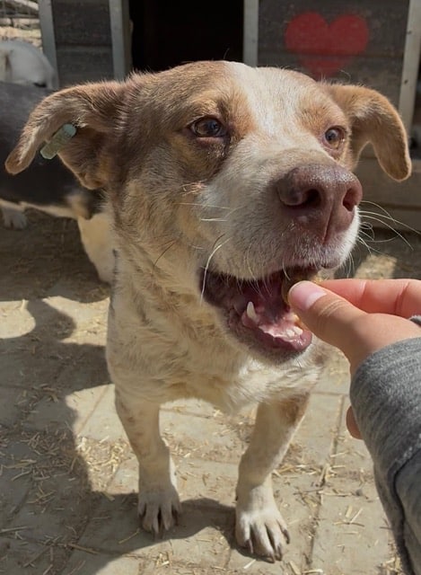 DOBBIE war während unserer Anwesenheit im Kennel immer in unserer Nähe. Er war sehr an uns interessiert. Besonders unsere Leckerlis hatten es ihm angetan. Diese nahm er sehr gern auch direkt aus der Hand.