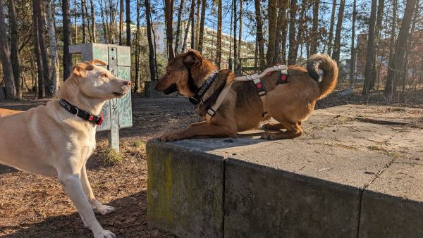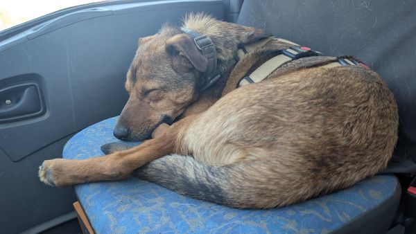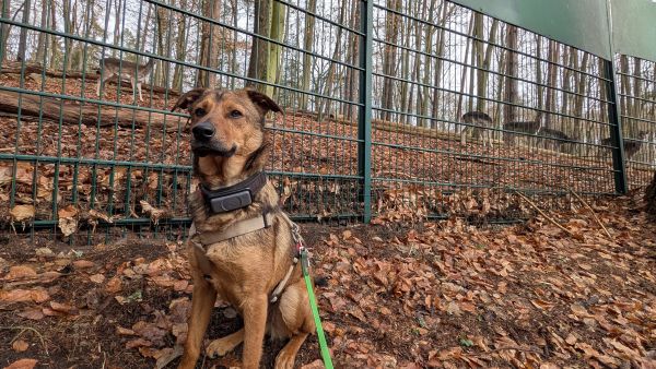 Dschulay ist seit März 2026 in Deutschland und hat bereits viel gelernt. Er versteht sich gut mit anderen Hunden, fährt entspannt im Auto mit und läuft in ruhiger Umgebung bereits gut an der Leine. Er geht gerne im Wald spazieren und läuft auch gern beim Joggen mit. Wenn ihm beim Spazierengehen an der Leine aufgeregte oder pöbelende Hunde entgegenkommen, reagiert er gelassen und ignoriert deren Verhalten. Freundlichen Hunden gegenüber zeigt er Interesse, lässt sich aber problemlos weiterführen, wenn kein Kontakt gewünscht ist. An der Leine zeigt er sich gegenüber Rehen und Kleintieren eher uninteressiert und hat bisher kein Jagdinteresse gezeigt. Auf dem Hundeplatz ist er im Umgang mit Artgenossen sozial, eher verspielt und, wenn nötig, deeskalierend.