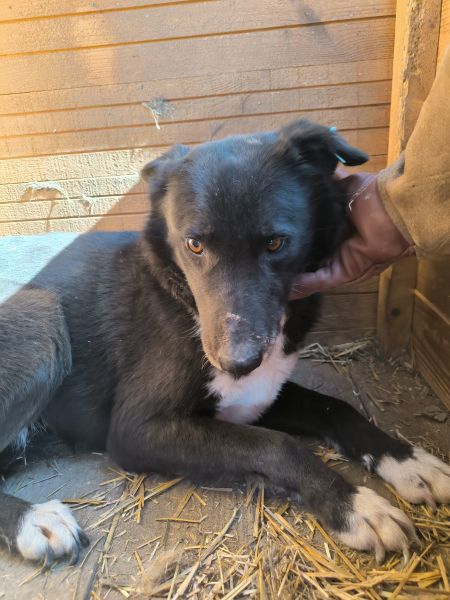 Dunja wurde in einem anderen Kennel wohlauf wiedergefunden. Neugierig beobachtete sie uns, als wir den Kennel betreten haben. Leider reichte ihr Mut nicht dafür aus, aktiv Kontakt zu uns aufzunehmen. Zu groß ist die Unsicherheit im Kontakt mit Menschen. Als wir sie in der Hütte leicht bedrängten, konnten wir sie problemlos überall anfassen. Genießen konnte sie es leider nicht, jedoch hielt sie die Berührungen tapfer aus.