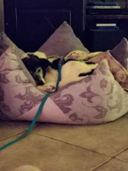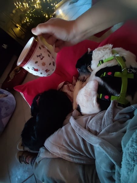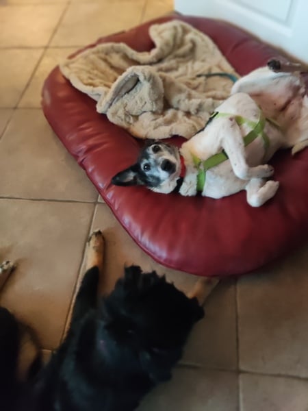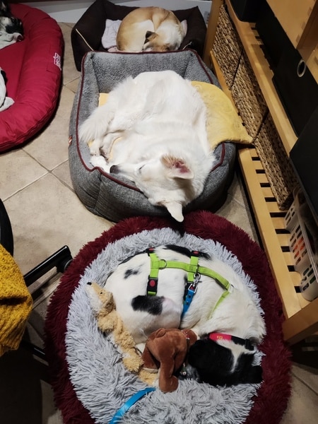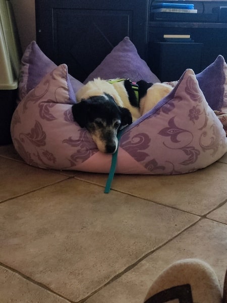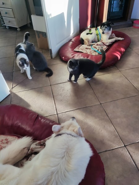 Sie ist im Haus unauffällig, schläft in ihrem Krönchen; im Garten zieht sie ihre kleine Runde und steht anschließend wieder vor der Tür. Ab und zu fordert sie mittels pföteln Eintritt; meistens wartet sie aber einfach geduldig, bis man die Tür wieder öffnet und sie zu ihrem Krönchen tippeln kann. Sie bellt nicht, sie schimpft nicht, sie ist geduldig. Sie lässt die anderen Hunde schnuppern, zeigt weder Abwehr oder Unbehagen noch bedrängt sie. Hier würde aber auch niemand auf die Idee kommen, die liebe Omi irgendwie zu belästigen. Katzen, Hunde, Kinder, Alltagsgeräusche, Autofahren, Alleine bleiben oder im Rudel – alles kein Problem für Eila. Und dass Sofa und Bett hier tabu sind, hat Eila von Anfang an akzeptiert.