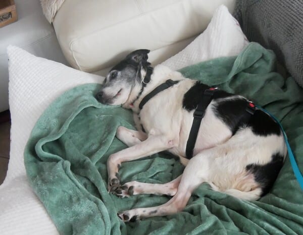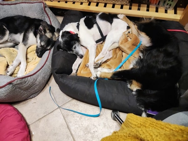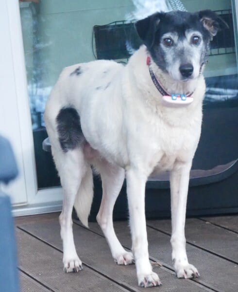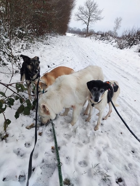 Eila ist eine liebe Dame, die sich jetzt ihres Lebens freut. Sie mag es hier; sie ist absolut verträglich, ich glaube, sie würde nicht mal einem Mäuschen etwas zuleide tun. Ab und zu kriegt sie ihre drolligen fünf Minuten, spielt einen Hund an, wird albern und kaspert herum. Dann kommt der junge fröhliche Hund durch, der sie nie sein konnte. Es scheint, als hole sie Verpasstes nach; dann freut sich diese kleine Hündin und die Rute wackelt heftig hin und her. Und ihre Freude schwappt dann über, direkt ins Herz. Zu schön, sie so glücklich zu sehen.
