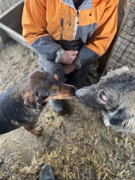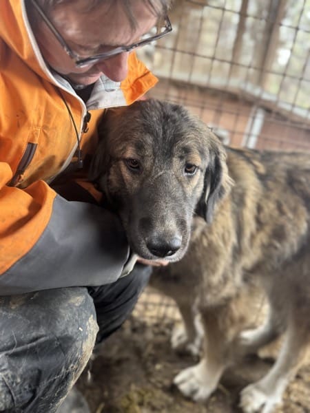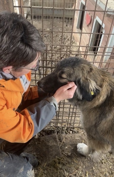 Diese Hündin erwartete uns bereits an der Kenneltür. Als wir den Kennel betreten haben, wich sie uns erst mal aus. Mit leichter Bedrängung konnten wir sie dann überall gut anfassen. Dies konnte sie auch bereits zum Teil genießen. An einer bestimmten Stelle genoss sie die Streicheleinheiten besonders, sodass sie sogar mit ihrem Fuß mitkratzte.