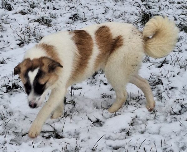 | Wesen & Zutraulichkeit (Character & Trustworthiness) | welpentypisch (typical for puppies), verspielt (playful), offen (open), freundlich (friendly), neugierig (curious), sehr menschenbezogen (very people-related), gerne anfassbar (likes to be touched), überall anfassbar (touchable everywhere), anfassbar (touchable), nimmt Leckerchen (takes goodies), zutraulich (trustful), benötigt Eingewöhnungszeit (takes time to settle in) |